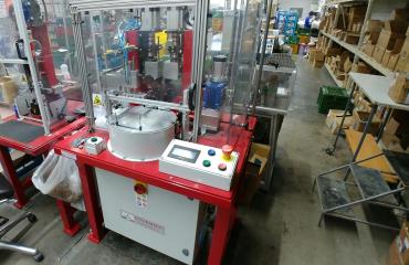 INTERMECC Mod. BM8 is an automatic machine for change the camber of steel-shank, both increasing and decreasing, but also for making a torsion to rotate extremities. Machine is provided by three brushless motors that make clamping inside vises and bending or twineing steel-shank. A PLC with a touch screen allows operator to define size of deformation, and is situated in the front part of machine, easily to reach by operator. In front part of machine is situated also steel-shank's loader; it consists of a rotating double-station platform: one station is inside the working area, the second is ready to be loaded by operator; the two stations change their position automatically. It is possible to set the number of steel-shanks to work: machine stops at the end of prodution lot.
