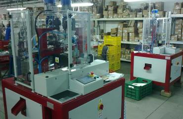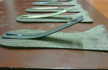 La INTERMECC Mod. BM10 è una macchina automatica per l'applicazione della lamina sulla tallonetta per mezzo di un rivetto. Il movimento di rivettatura è ottenuto mediante un motore elettrico; tutti gli altri movimenti sono pneumatici. Il passaggio da un tipo di lamina/tallonetta ad un altro avviene in modo molto rapido grazie alle pochissime regolazioni necessarie. La macchina è dotata di un dispositivo di centraggio della lamina sulla tallonetta che consente di raggiungere un'elevata precisione sul prodotto finito. Un altro dispositivo permette di far aderire perfettamente il rivetto alla lamina e alla tallonetta, determinando un accoppiamento molto stabile e la tendenza della tallonetta a seguire la curvatura della lamina. La robustezza della struttura della macchina rende possibile la rivettatura di materiali anche molto duri e di alto spessore. La produzione è elevata, intorno alle 1500 paia/ora.